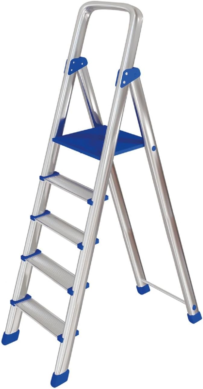 Leonardo Fai Da Te Scala Pieghevole in Alluminio 4+1, Portata 150 kg EN 131, Antiscivolo, Ideale per Uso Domestico e Lavorativo